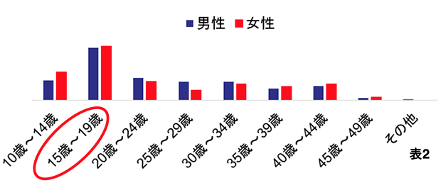 Q、あなたはいつから自分の体臭が臭いと思いましたか?(n=男138/女138)表2