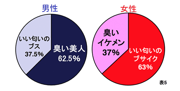 Q、恋人にするなら「臭いイケメン/美人」「いい匂いのブサイク/ブス」どちらですか?(男女各n=200)表5