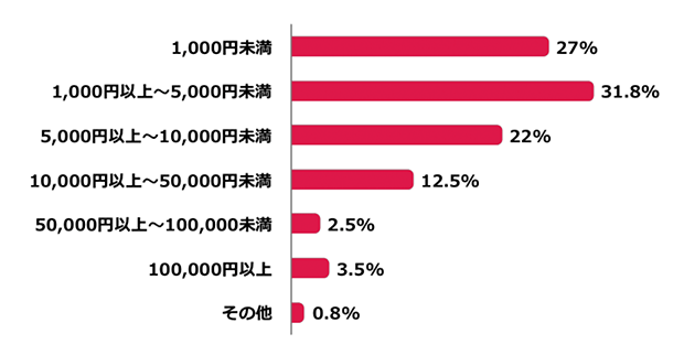 理想のすっぴん美人になれるなら、お金をいくらかけられますか?という質問に対し1,000円以上~5,000円未満という回答が最も多く、理想のすっぴんになれるのにも関わらず、10,000円以上の回答は半数にも満たない結果となりました。