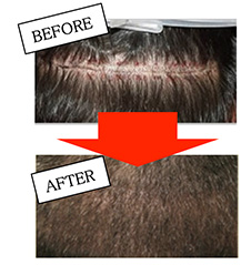 頭皮の毛束の位置を特定・分析し自然な毛束を無傷のまま正確に抜き取ります。採取後の頭皮は自然な外観を保つことができます。