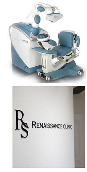 頭皮の毛束の位置を特定・分析し自然な毛束を無傷のまま正確に抜き取ります。採取後の頭皮は自然な外観を保つことができます。従来の植毛手術では「おび状」にドナー部皮膚を採取おり、常に線状の傷が残るリスクがありました。しかし、「ARTAS」は切開を行わない為、傷が残るリスクは全く有りません。頭皮を切らないため、傷が残らないだけではなく施術後のダウンタイムや身体への負 担も最小限となりました。移植用の毛髪を安全かつ効率的に採取する ための高度な最先端技術を駆使した医療機器です。