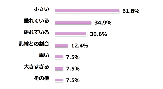 その理由としては1位:小さい、2位:垂れている、3位:離れているという結果となり、ほとんどの人が小さいことを悩みとしてとらえているということが分かりました。