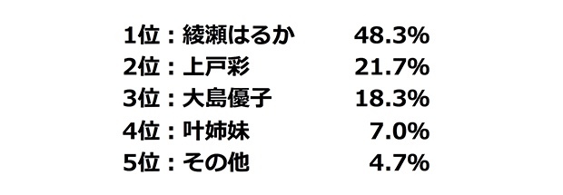 あなたがなりたい美乳の有名人とは?という質問をしたところ、2位と圧倒的な差をつけて綾瀬はるかがダントツの第1位となりました。