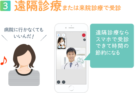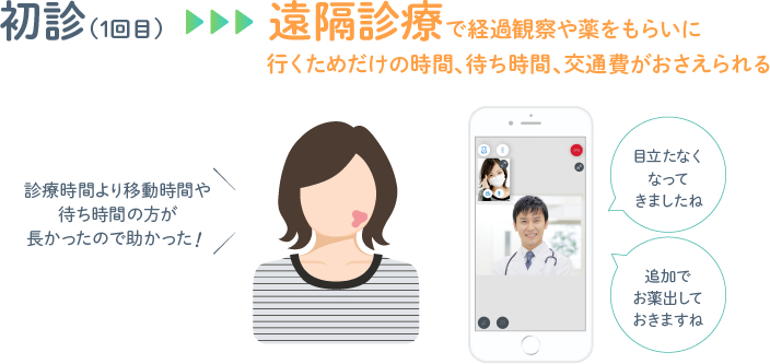 再診で対面診療の必要がなければ、通院せずに遠隔診療だけで治療が受けられる。