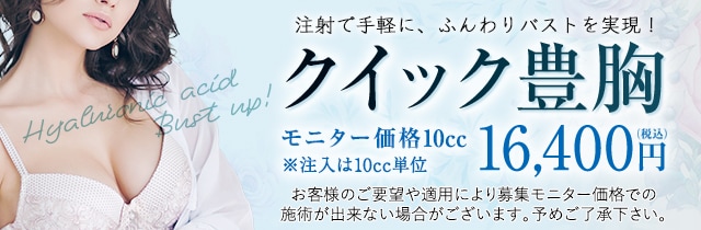 クイック豊胸は、豊胸術用のヒアルロン酸を使用しています。従来の豊胸用ヒアルロン酸より粒子が細かく柔らかいので、自然なバストアップが実現できます。