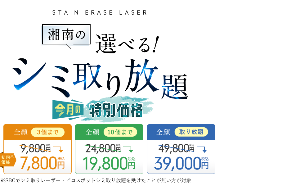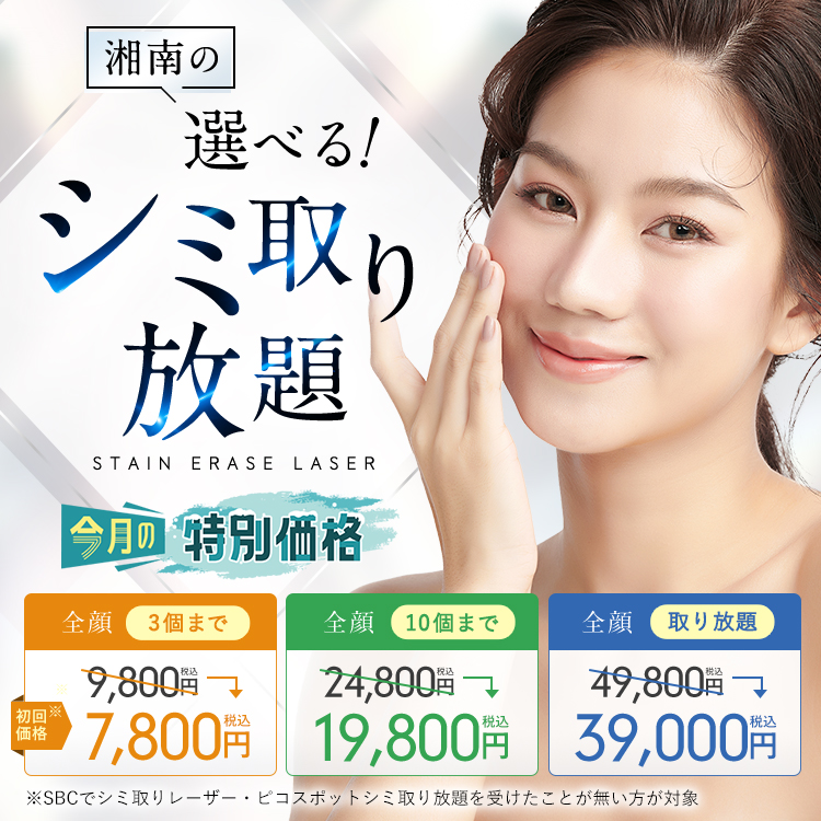 ※初回価格はSBCでシミ取りレーザー・ピコスポットシミ取り放題を受けたことが無い方が対象。