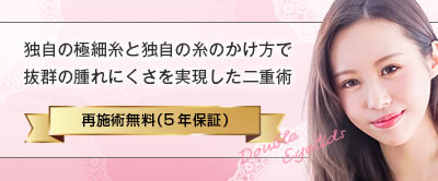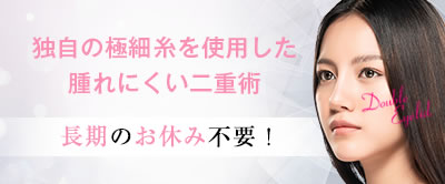 通常の埋没法がポイントで留めるのに対し、腫れづらいスクエア二重術では、まぶたの二重のラインに沿って、糸をスクエア形式で留めるので、強度が強く持ちが良いのが特徴です。
